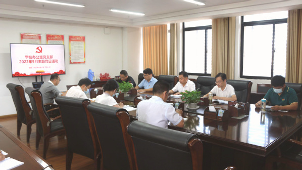 本网讯 9月27日下午,学校办公室党支部在厚德楼707会议室开展9月份主题党日活动。校党委书记陈向军以普通党员身份参加本次活动并讲话。他强调,要深入学习贯彻落实学校第三次党代会精神,争做“四个表率”,为建设“全省一流、全国知名”高水平师范大学贡献学校办公室力量。