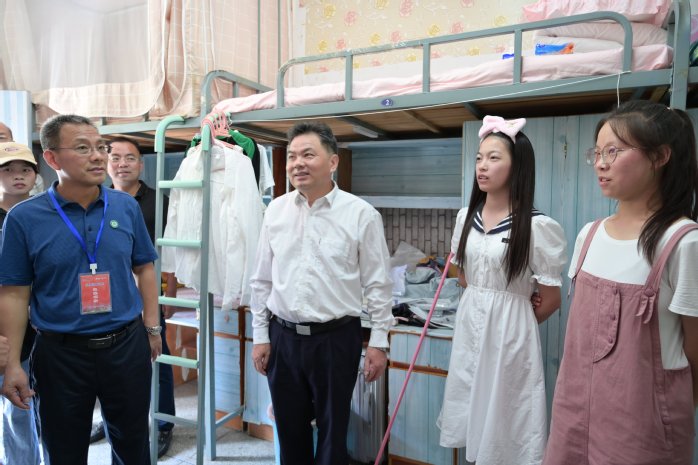 迎新期间,学校领导来到迎新现场检查指导。党委书记陈向军,党委副书记、校长漆昌柱等在家校领导来到南北校区各迎新接待点、学生宿舍等地,看望前来报到的新生和家长,对学生及家长的到来表示热烈欢迎,了解学生住宿和生活情况,勉励各位新同学以最积极饱满的状态融入大学生活;慰问奋战在迎新一线的教职工和大学生志愿者,强调要以热情负责的态度做好新生入学服务工作,确保迎新工作顺利完成。“对黄师的印象好不好啊?”“吃不吃得惯学校的饭菜?”“今后要好好学习,做一个积极上进的黄师人”校领导的关心和殷切嘱托,让学生倍受鼓舞。