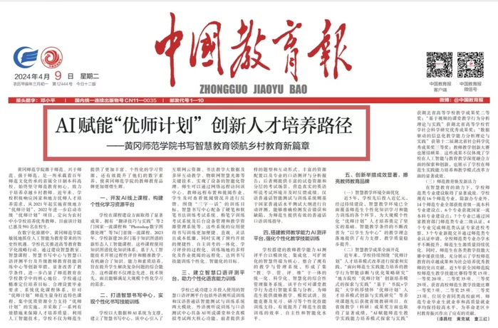 【媒体黄师】《中国教育报》:AI赋能“优师计划” 创新人才培养路径