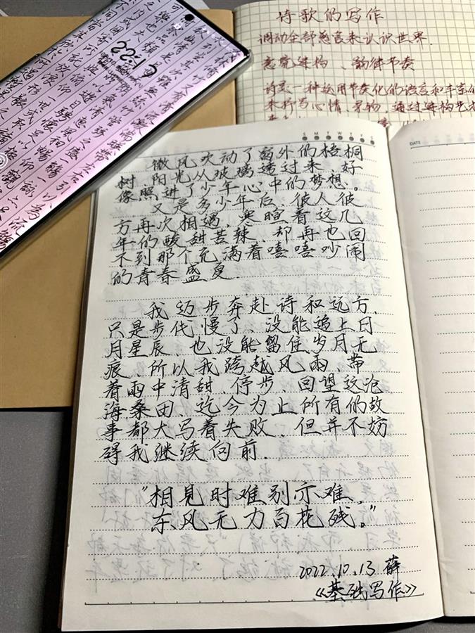 在学校,薛炜除了专注体育教育专业的学习,还选修了汉语言文学专业的双学位。极目新闻记者看到,薛炜的抖音账号上,记录了自己丰富多彩的生活,而配的文案也非常优美,“我不停地记录,才留下了这些光影”“从学校紫园食堂二楼下来的楼梯转角处,我想象到了很多的画面‘夕阳熏细草,江色映疏帘’‘残霞夕照西湖好,花坞苹汀。十顷波平……’”“家徒四壁,但很干净。斯是陋室,惟吾德馨。”