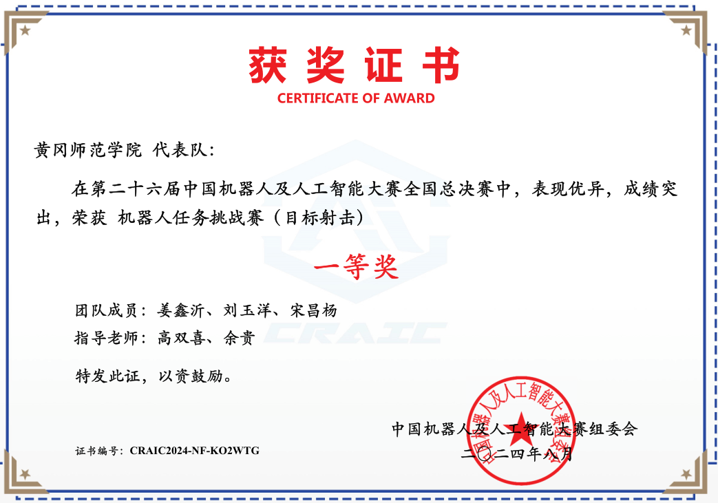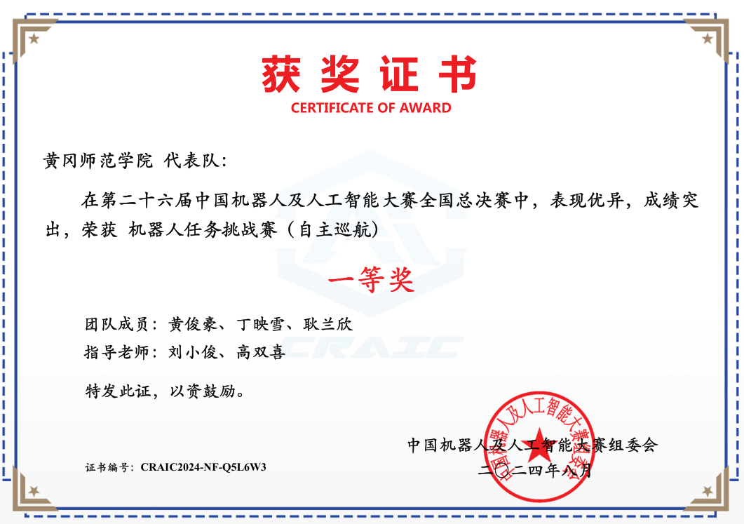 【黄师荣誉】我校在第二十六届中国机器人及人工智能大赛中荣获3项全国一等奖