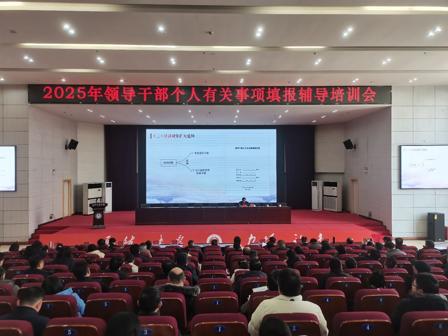 本网讯 为高质量做好2025年领导干部报告个人有关事项工作,2月16日上午在南区学术交流中心,学校召开2025年领导干部个人有关事项填报辅导培训会,校党委书记陈向军,校党委副书记、校长漆昌柱等全体校领导出席会议。党委副书记、组织部部长王基家作填报辅导培训。