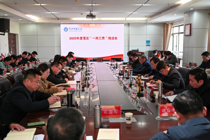 本网讯 3月20日下午,学校在厚德楼四楼二号会议室召开2025年度落实“一岗三责”推进会。校党委副书记、校长漆昌柱等全体在家校领导出席会议。校党委副书记王基家主持会议。