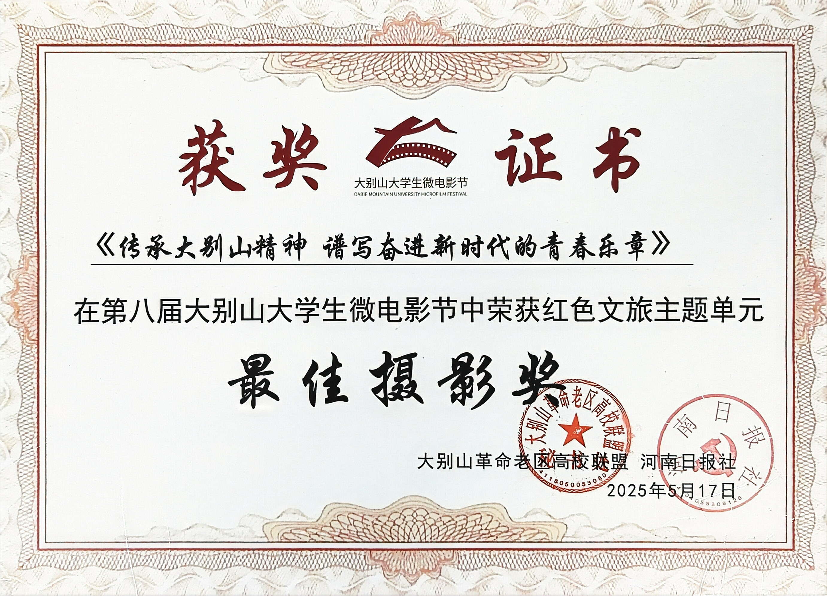 本网讯 5月17日晚,由大别山革命老区高校联盟、信阳师范大学、河南日报社主办的第八届大别山大学生微电影节圆满落幕。我校传媒与影视学院选送的作品斩获“最佳摄影奖”“最佳创意奖”“最佳导演奖”等4项,我校荣获“优秀组织单位奖”。