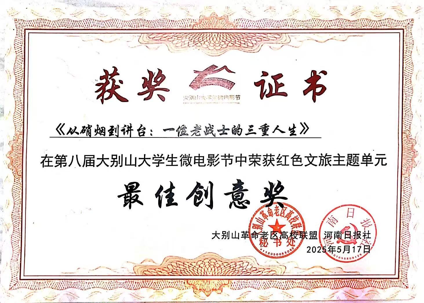 获奖作品《传承大别山精神,谱写奋进新时代的青年乐章》以生动的镜头展现了当代青年赓续大别山精神,筑牢信仰根基,不断锤炼志气、骨气与底气的精神风貌。《从硝烟到讲台:一位老战士的三重人生》讲述了黄冈老战士胡耿的传奇人生,通过“戎马报国、红色传承、终身宣讲”三大篇章,展现一位革命者从战场到讲台的赤诚之路,以个体命运折射家国情怀,诠释了共产党人的精神底色。《穿越时空的村训——清廉村居》则通过细腻的叙事和富有创意的导演手法,展现了廉政文化建设的时代价值。《只有三的世界》通过独特的影像语言和创新的拍摄手法,在实验片单元获得评委高度评价。