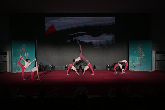 本网讯 5月28日,我校首届健身瑜伽大赛在厚德楼学术报告厅举行。来自全校18个教学学院的20支代表队、312选手参加比赛。校党委副书记、校长漆昌柱,党委副书记陈朝阳、王基家,党委常委、副校长宋文生出席活动。陈朝阳主持开幕式。
