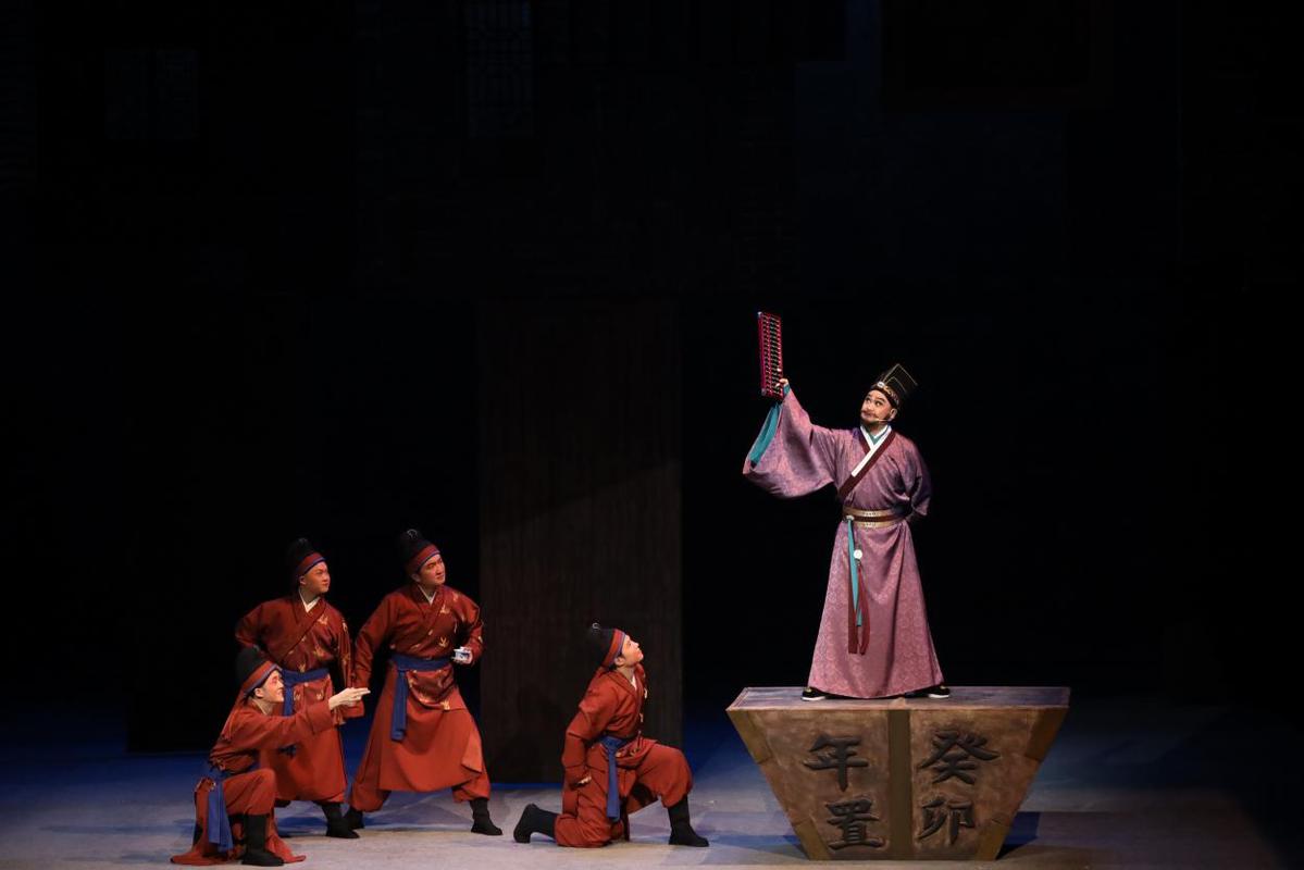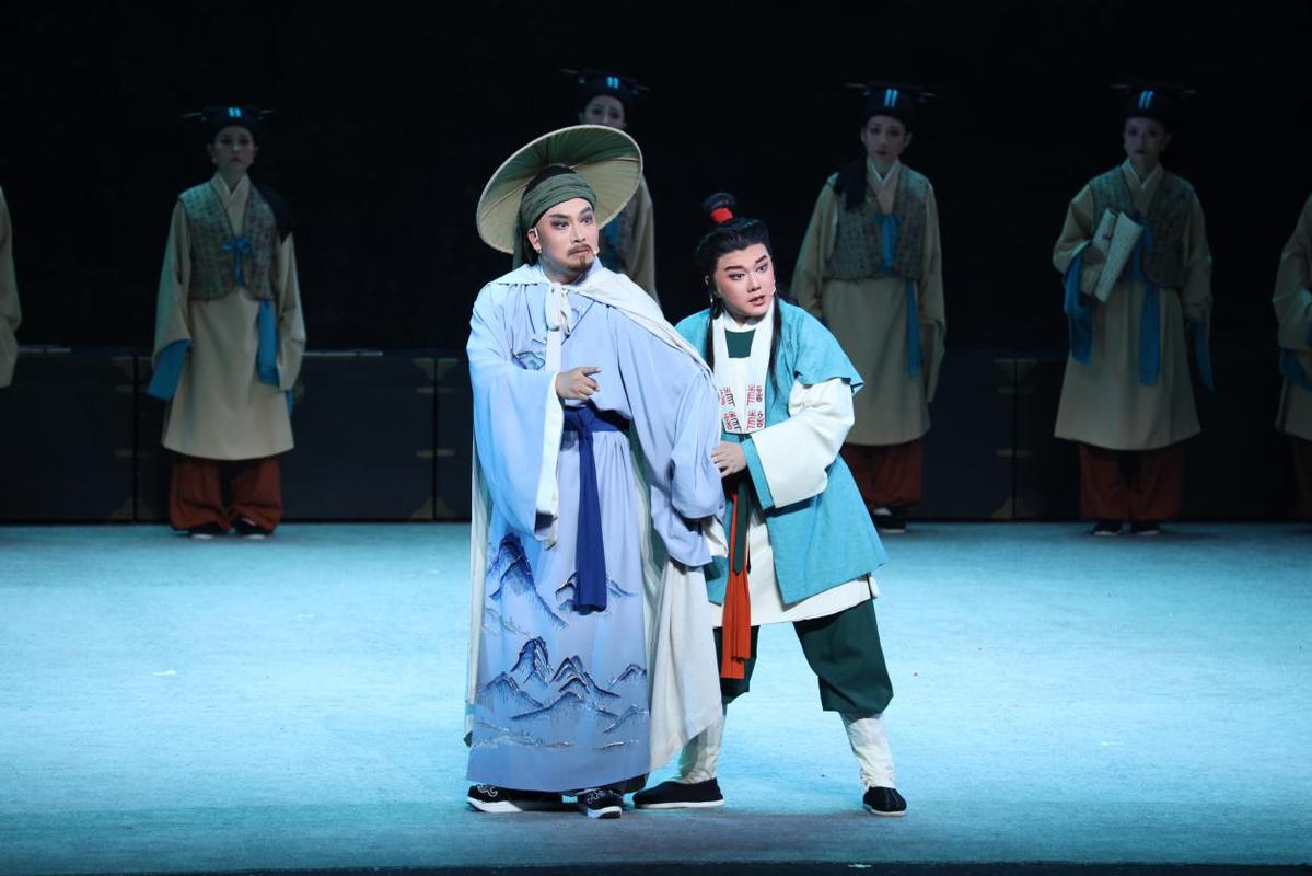 在此次创作编排中,轻喜剧元素的融入格外引人注目。编剧朱仁武深入钻研汪可受的史料,运用轻喜剧的创作笔法塑造人物形象,让历史人物在舞台上鲜活灵动;资深戏曲导演张行歌在舞台调度过程中巧妙融入轻喜元素,既保留了戏曲的程式之美,又化解了历史人物剧的沉重氛围。
